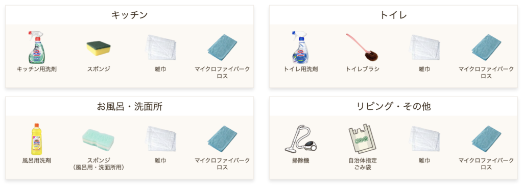 掃除代行の場合、キャストの方は自宅にあるものでお掃除をします。そのため事前にある程度準備をしておく必要があります。
