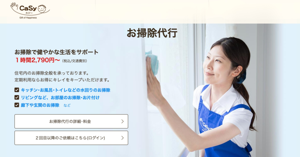 私はcasyという家事代行サービスを利用しています。ちなみに料理代行も同じくcasyです。