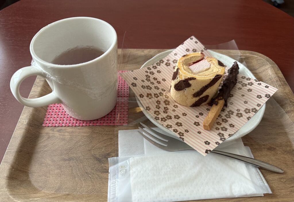 この日はロールケーキでした。手作り感満載のおいしさもありつつ、一緒に出してくれるカモミールティーにも癒されつつ本当に極楽。帰りたくない。